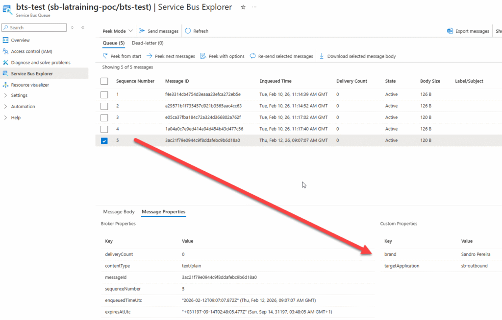 - Inspect the message properties section.